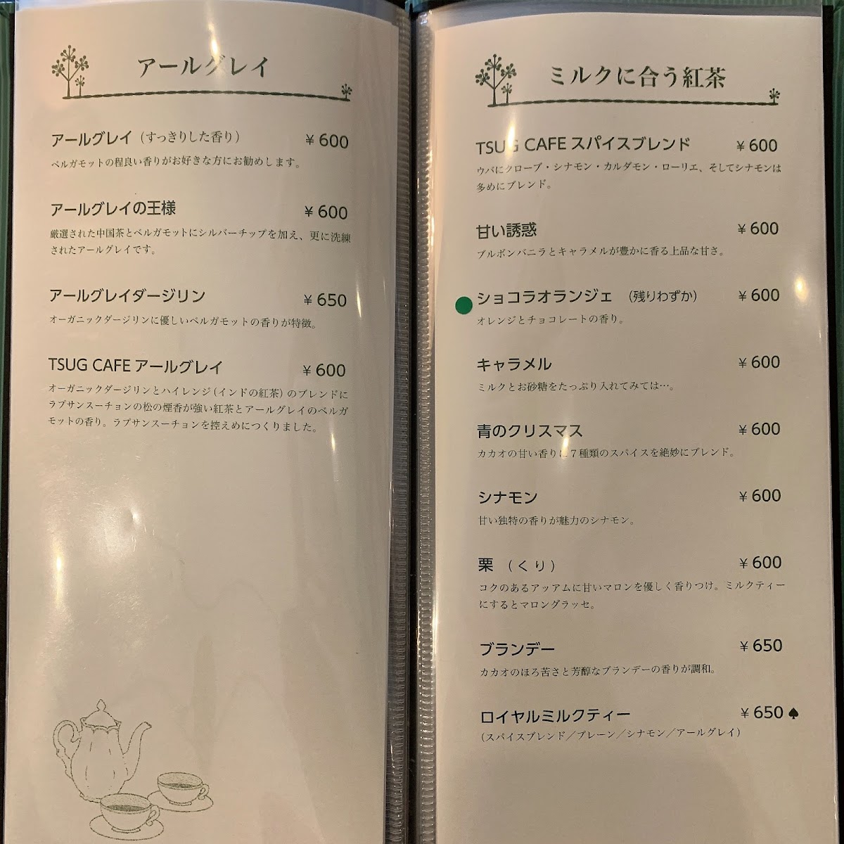 Upon entering TSUG CAFE, you’re greeted by a cozy atmosphere that is as inviting as it is serene. The decor is thoughtfully curated, and the tranquil ambiance is perfect for enjoying a few moments of peace with your favorite beverage. The heart of this cafe lies in its extensive tea menu, which is so diverse that it even boasts a table of contents for your convenience! While coffee lovers will find options to satisfy their cravings, the star of the show here is undoubtedly the tea.